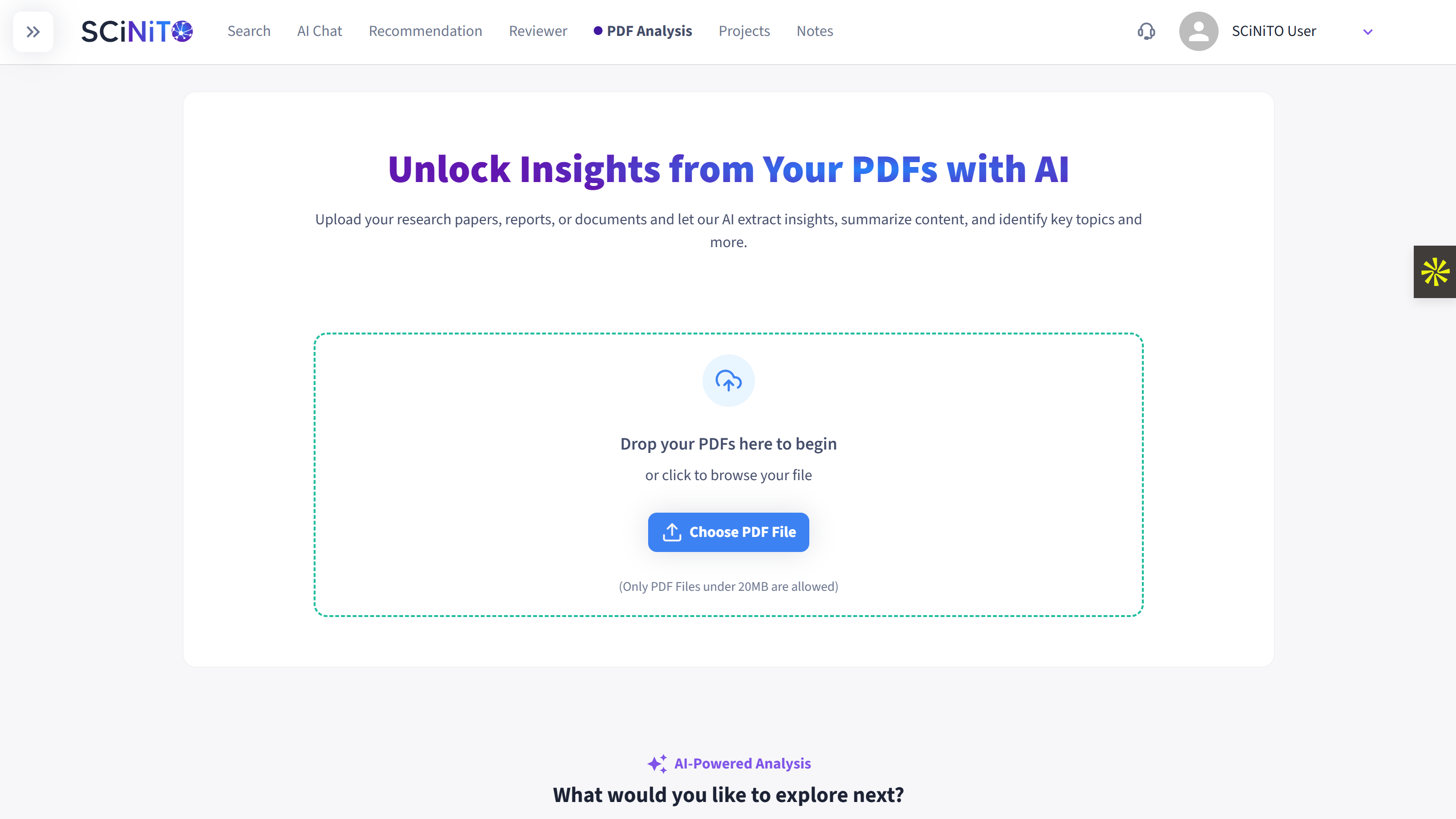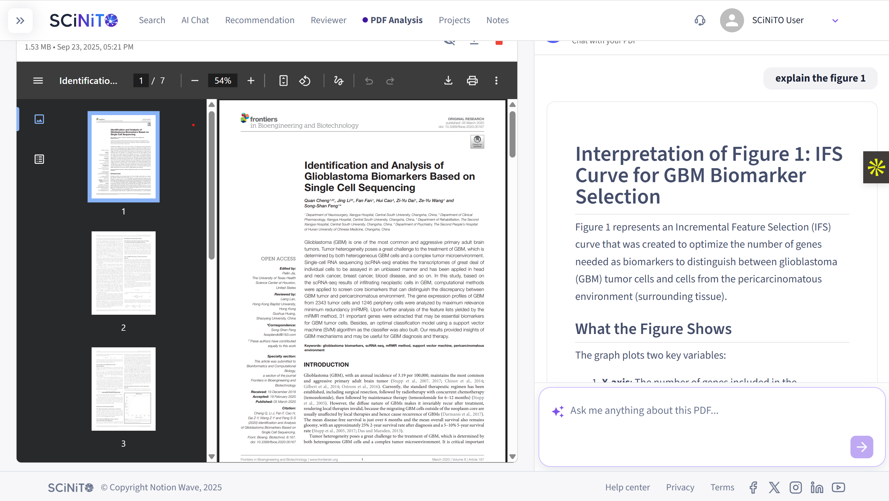 Analysis tool in SCiNiTO allows you to upload any scholarly article and